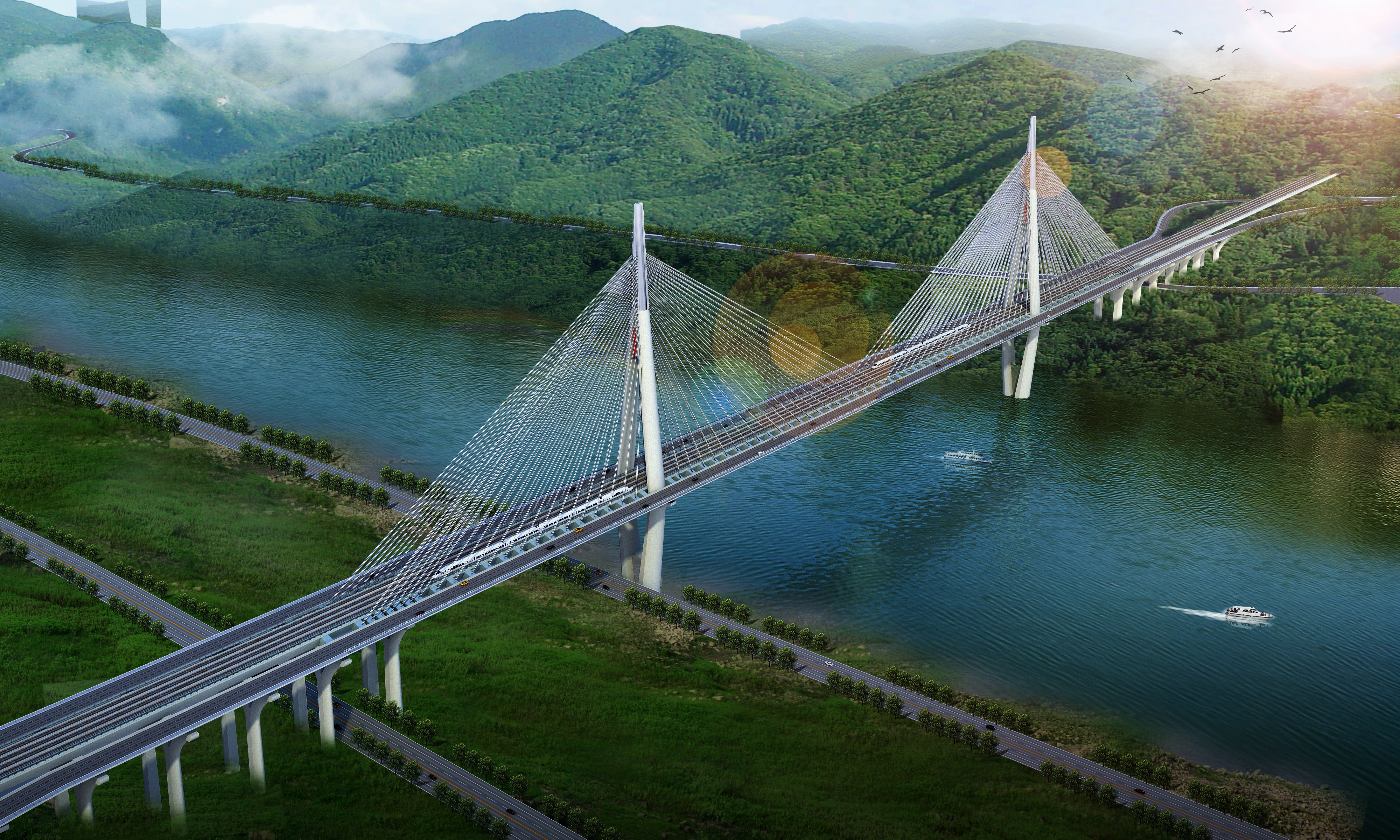 湖北荊岳長江大橋,主跨816米,南塔高224.5米,北塔高265.5米,是世界跨徑最大高低塔混合梁斜拉橋。